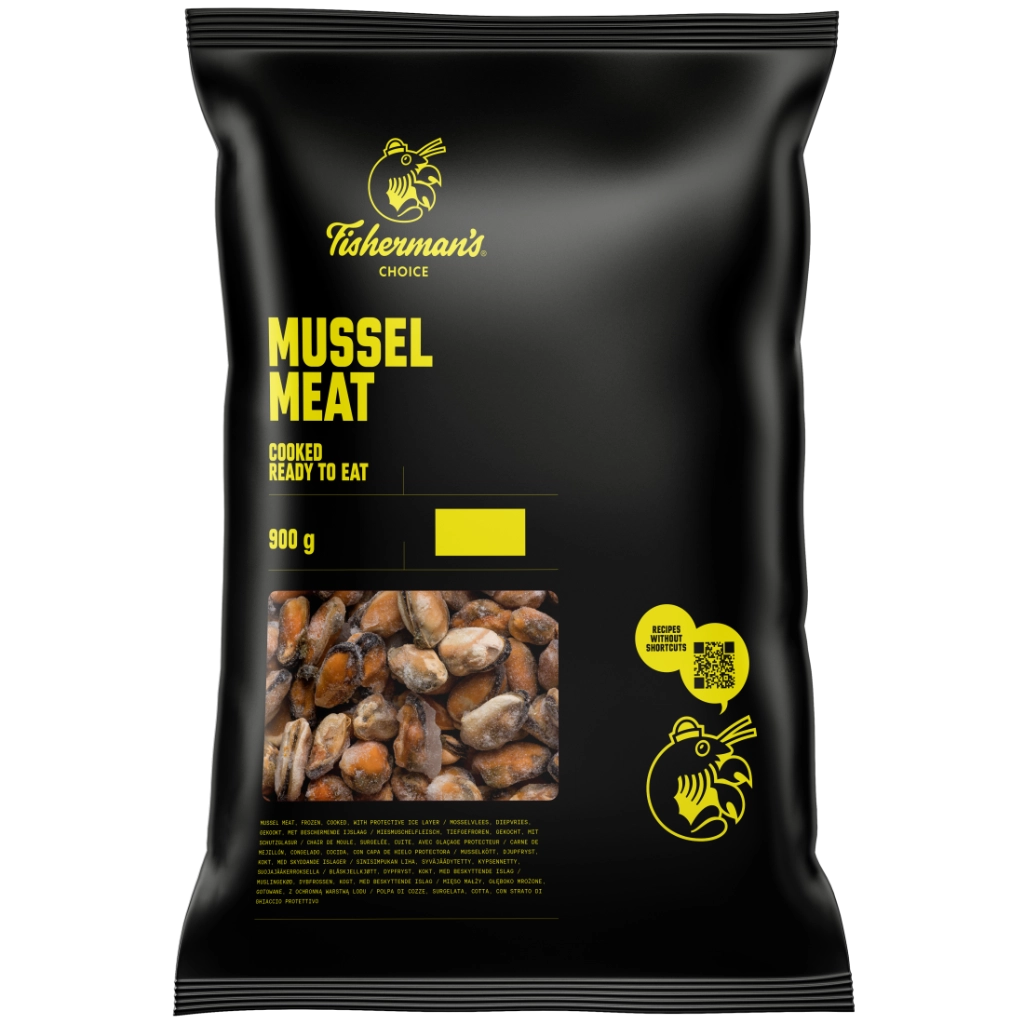 Mosselvlees, diepvries, gekookt, met beschermende ijslaag