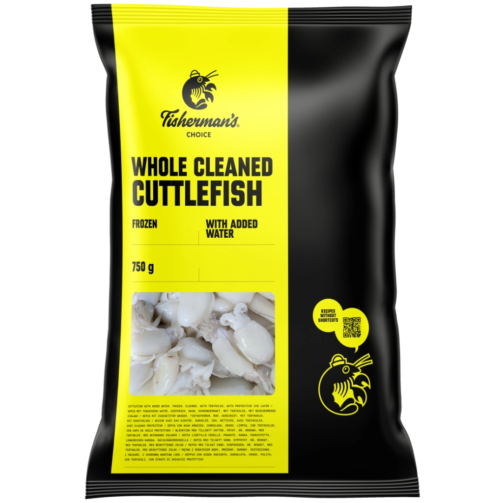 Sepia met toegevoegd water, diepvries, rauw, schoongemaakt, met tentacles, met beschermende ijslaag