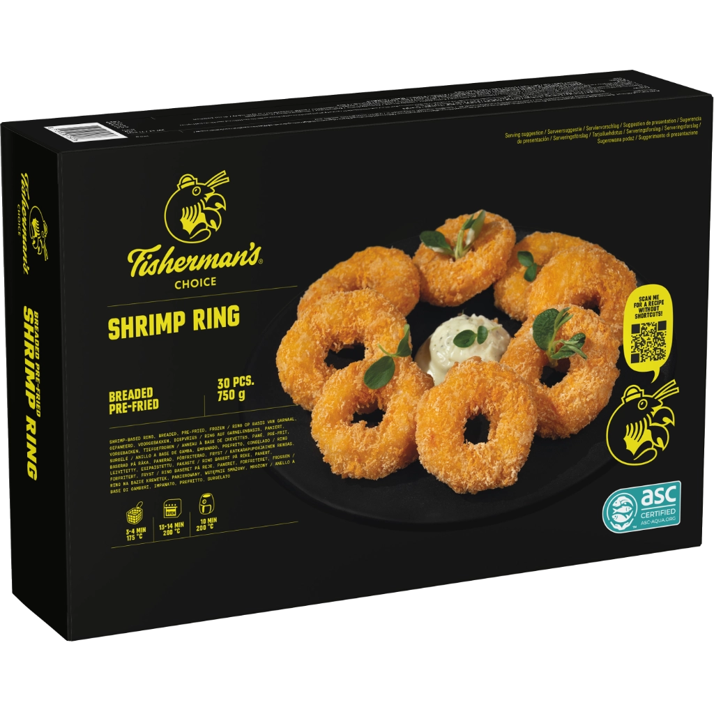 Ring op basis van garnaal, gepaneerd, voorgebakken, diepvries